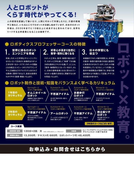 | 15:40~17:40(2時間) 第1/3/5週目クラス | 中学2年~高校3年 ロボティクス |